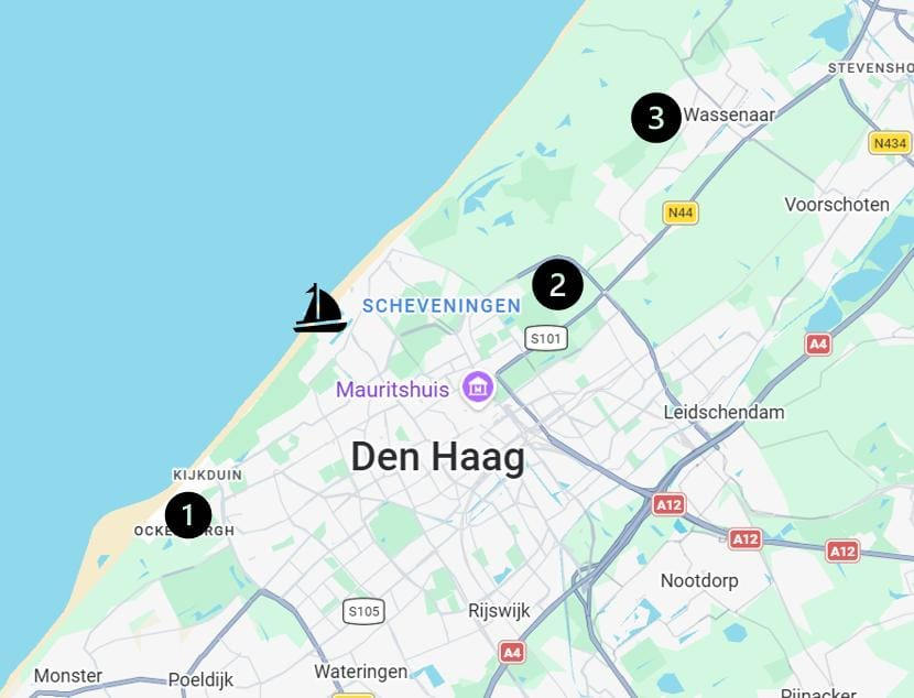 Distance to Jachtclub Scheveningen: ± 8 km