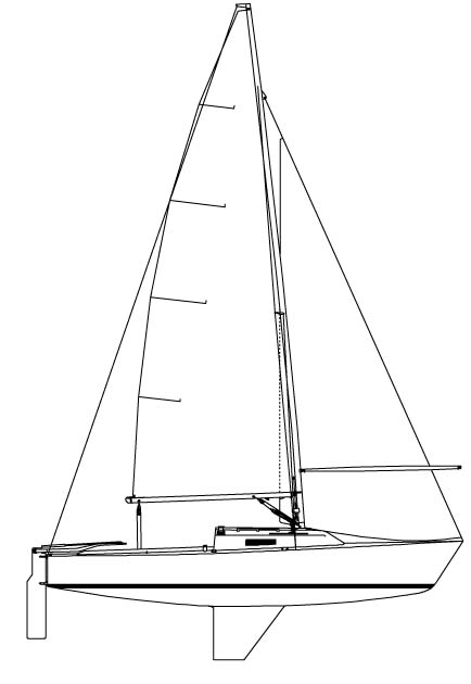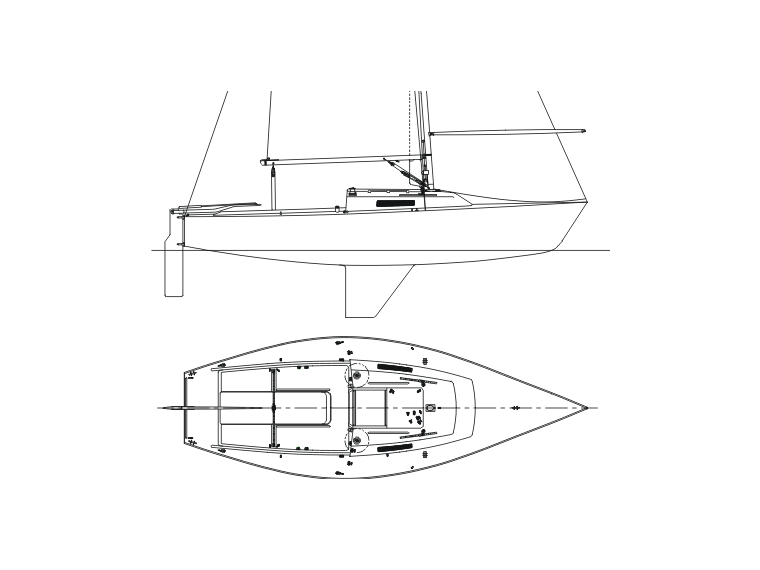 The wide midship beam combined with a narrow fin keel provide excellent stability upwind. The flat aft under water shape gives a perfect planing area. The sheer and bow lines give a good performance sailing in waves. the hull combined with an amble mainsail, a sensibly sized jib, a big spinnaker and light weight of 857 kgs gives a keelboat which responds like a ballerina. The sensitivity to windward is excellent, the helmsman gets all the pleasure of sailing a very responsive boat.